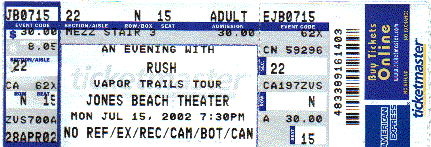 Rush Vapor Trails concert, Jones Beach Theatre, Long Island, NY 07/15/02 first set: